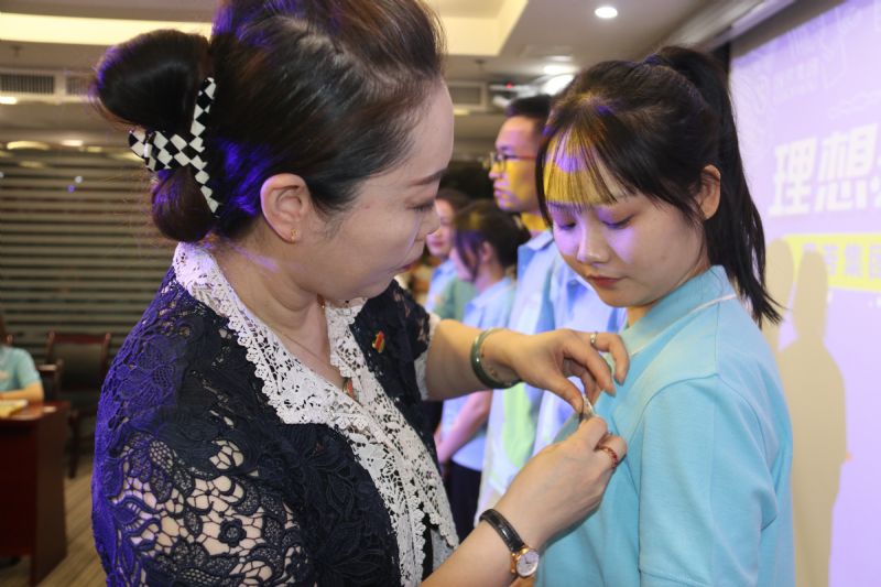 在入職儀式進(jìn)入尾聲之際,進(jìn)行授牌及贈(zèng)書(shū)儀式,由國(guó)芳集團(tuán)各位領(lǐng)導(dǎo)為新一屆管理培訓(xùn)生佩戴工卡并合影留念,從此刻起,數(shù)十名管理培訓(xùn)生便正式成為了國(guó)芳集團(tuán)中的一員。